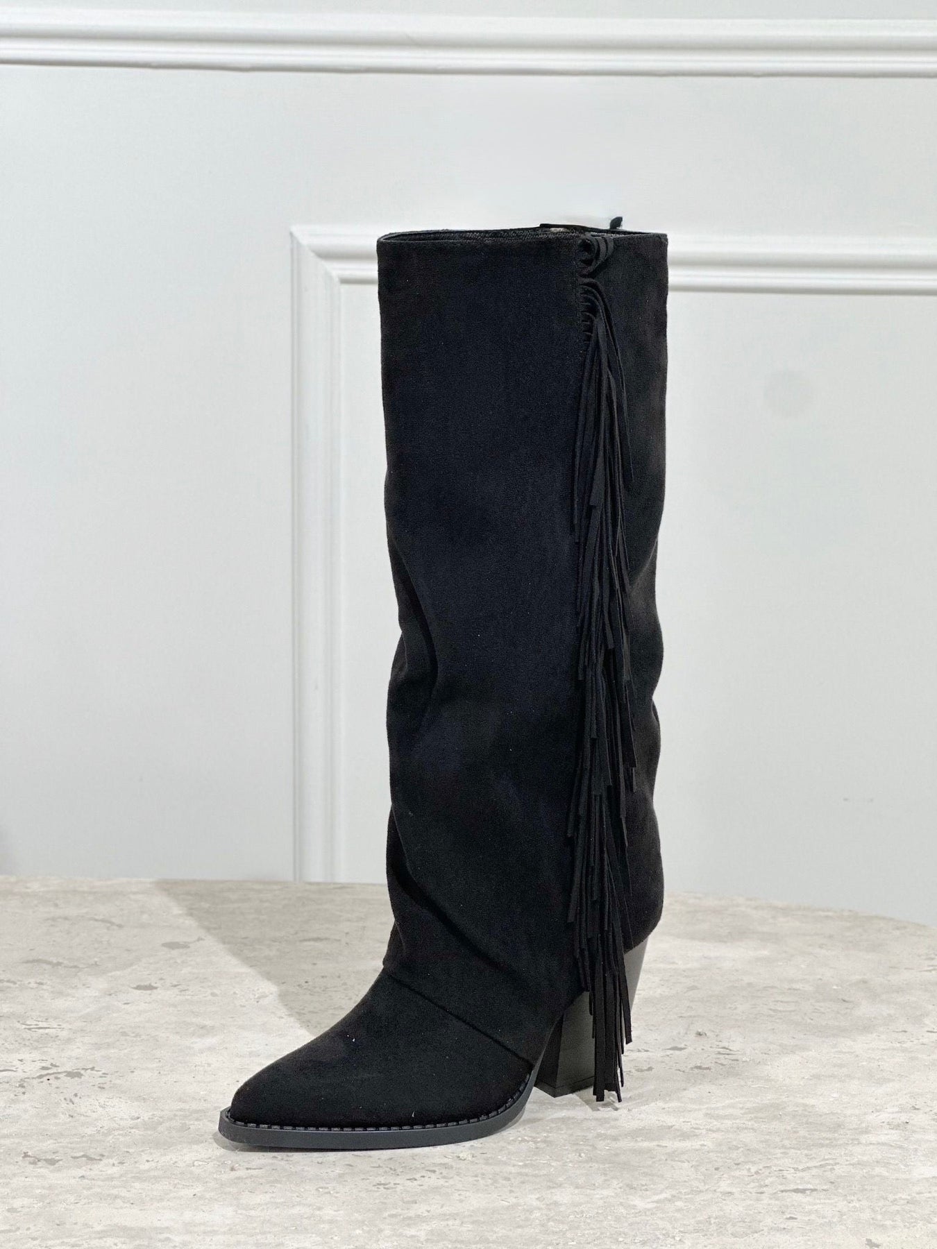 Botites santiags hautre effet daim avec zip sur le côté. Hauteur de talons 8cm.