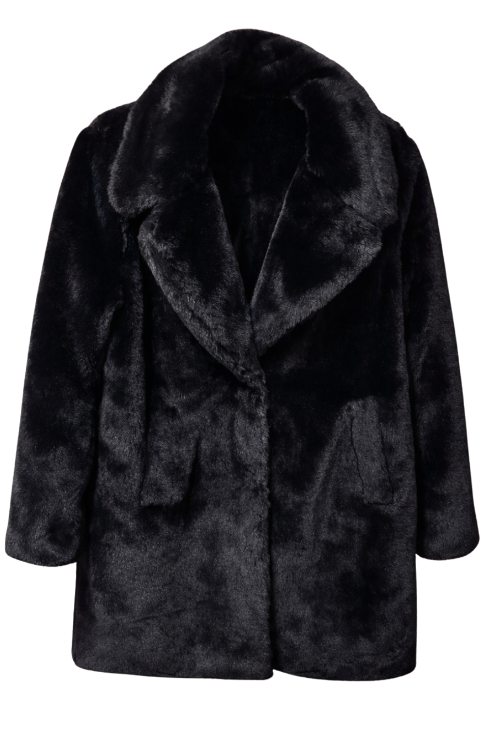 Manteau fourrure avec grand col et poches.