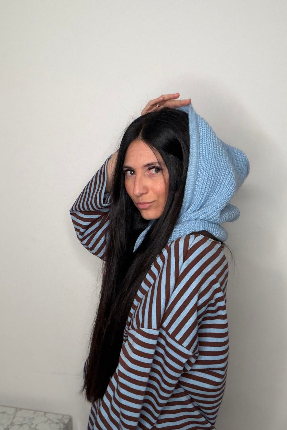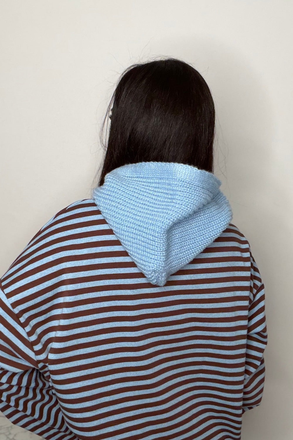 Cagoule en maille avec lacet.