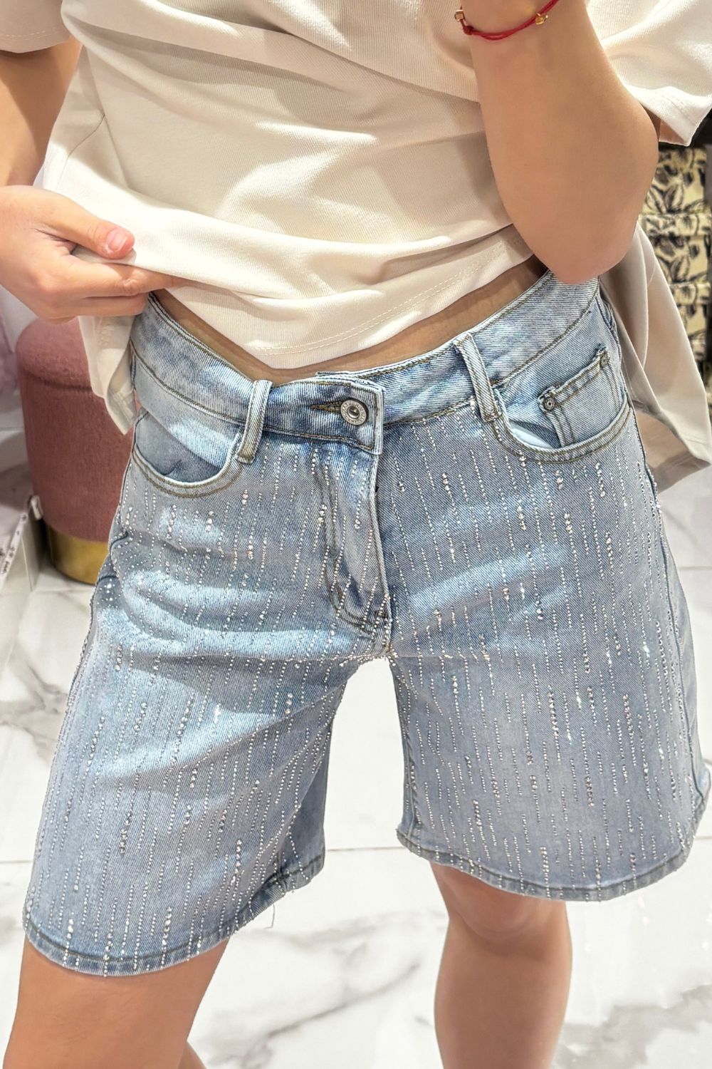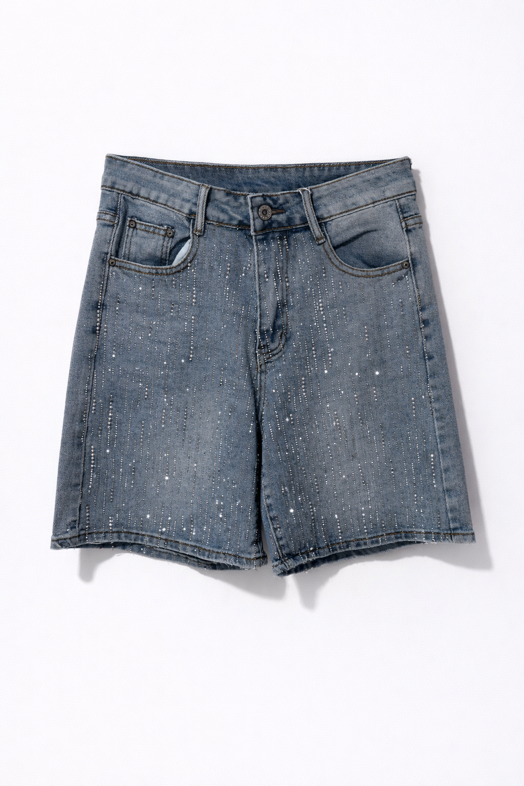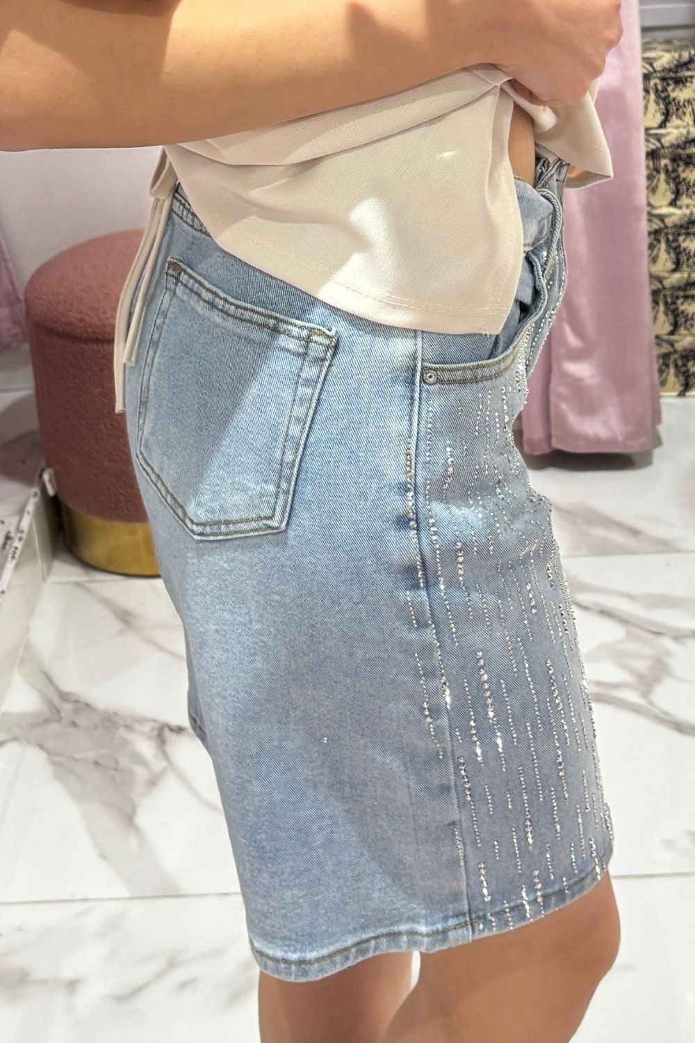 Short mi long avec pluie de strass sur le devant.