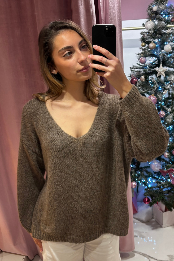 Pull en maille, oversize et col V.